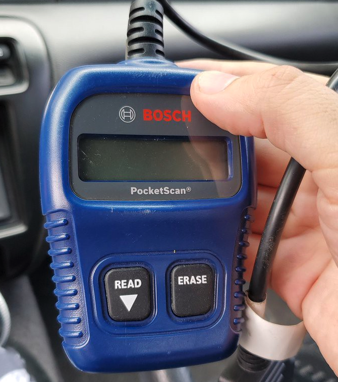 This car is a 1999 Honda Prelude so the on-board diagnostics port is by the passenger’s feet. In your car it may be near the driver’s feet instead. If you can’t find it, Google it.